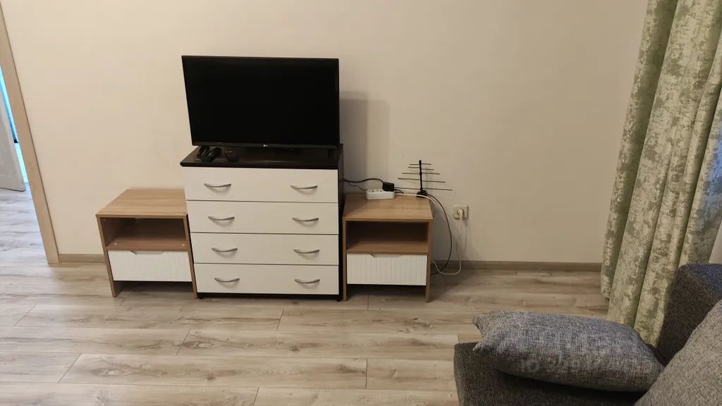 В квартире есть телевидение, холодильник, электроплита, микроволновка, стиральная машина, постельное бельё, средства личной гигиены и полотенца.